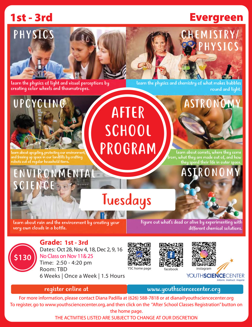 For any questions please contact Diana Padilla at diana@youthsciencecenter.org
